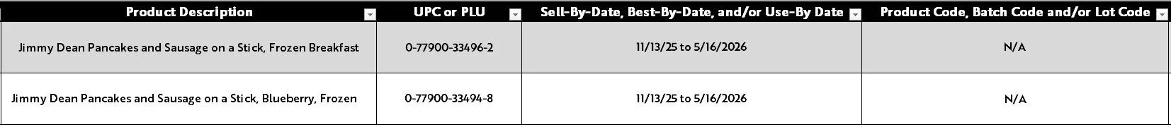 Tyson Foods, Inc., Hillshire Brands: Jimmy Dean Pancakes and Sausage on a Stick Oct 3 Written By Parminder Dhillon Affected Banner(s):Save Mart, Lucky, and FoodMaxx Affected Store(s):All Product Details: Learn more Parminder Dhillon